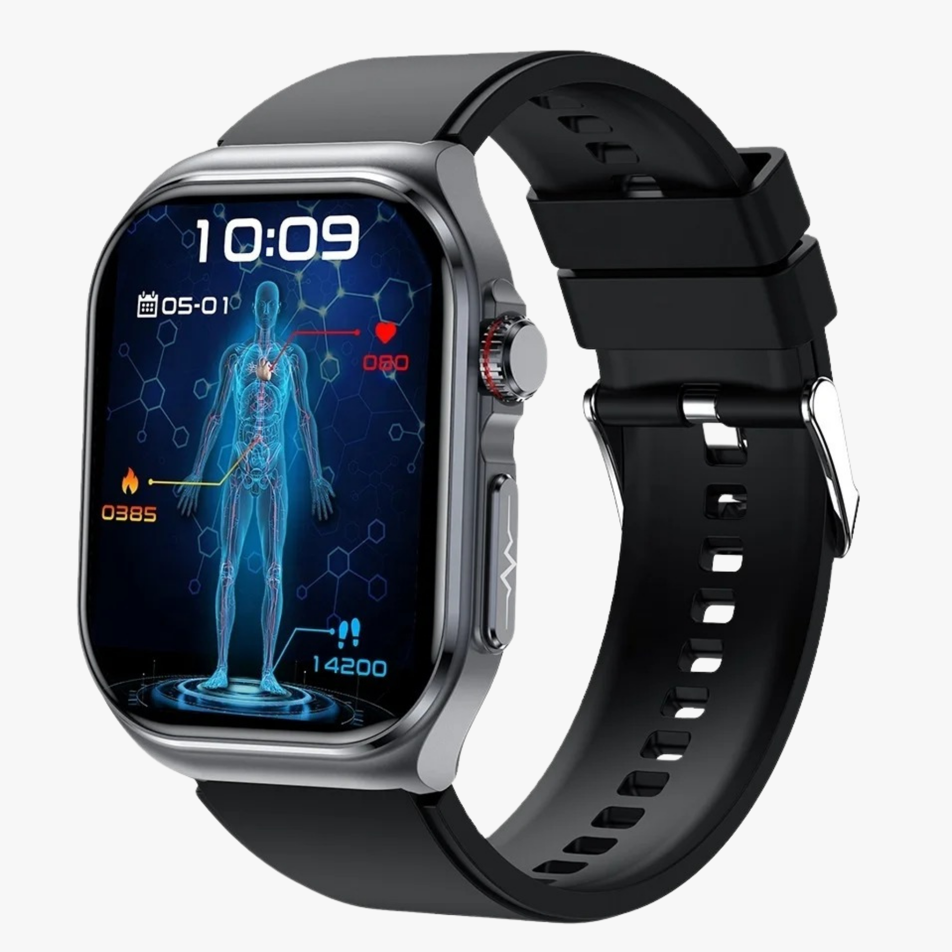 Montre Connectée Santé : avec ECG, Analyse Corporelle (Acide Urique, Masse Graisseuse, Musculaire), Mesure de la Fréquence Cardiaque, SPO2, Surveillance du Sommeil, Pression Artérielle, +100 Modes Sport, Notifications Appels/Message, Écran AMOLED 46mm, Autonomie 10 Jours, Étanche IP68.