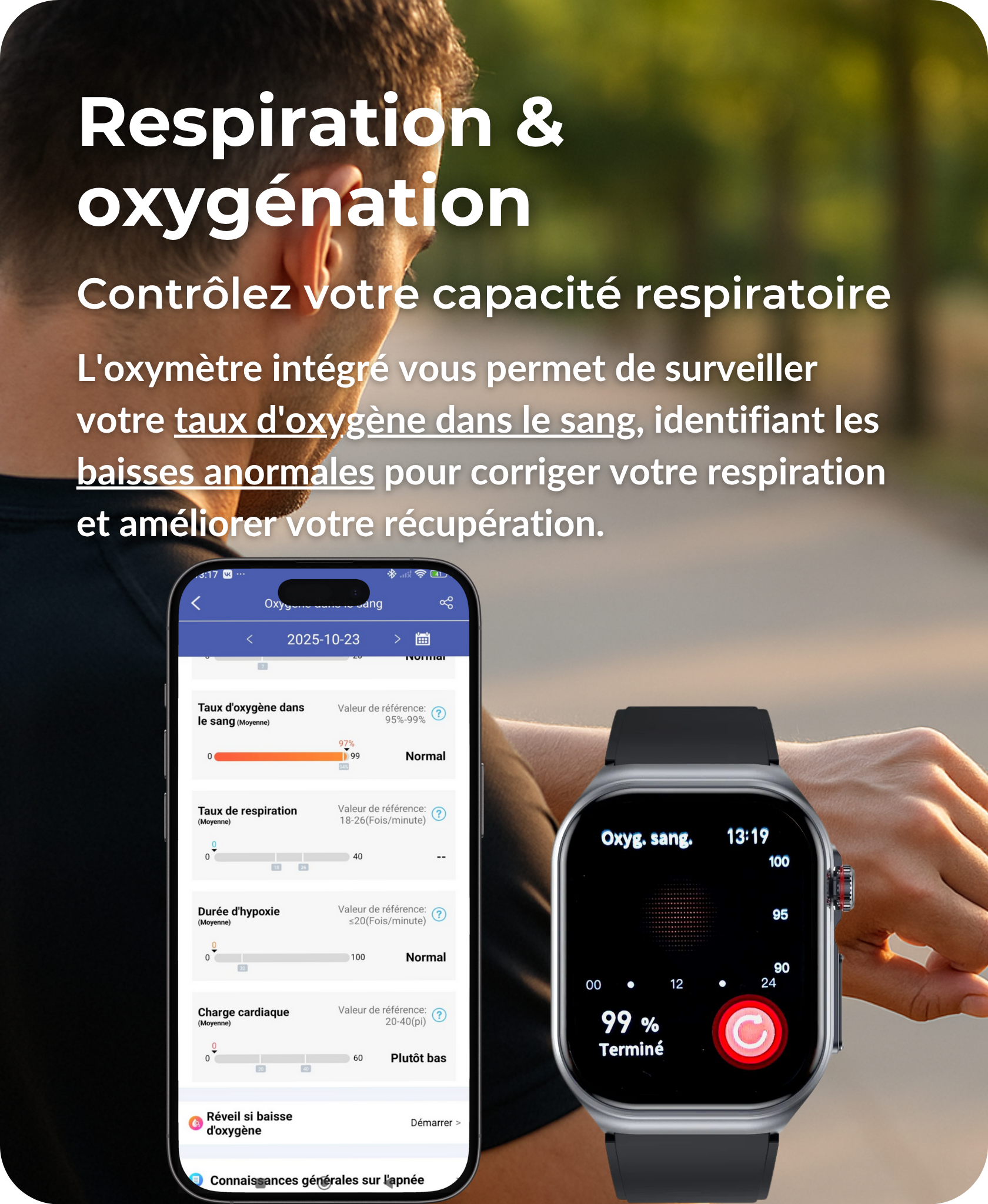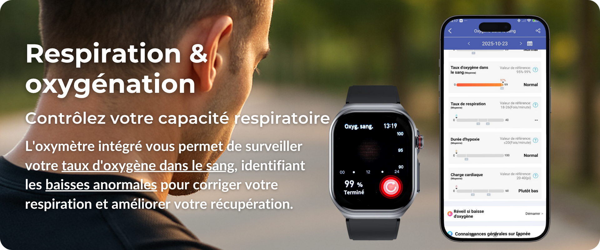 - Oxygène dans le sang : Vérifiez votre respiration et récupération