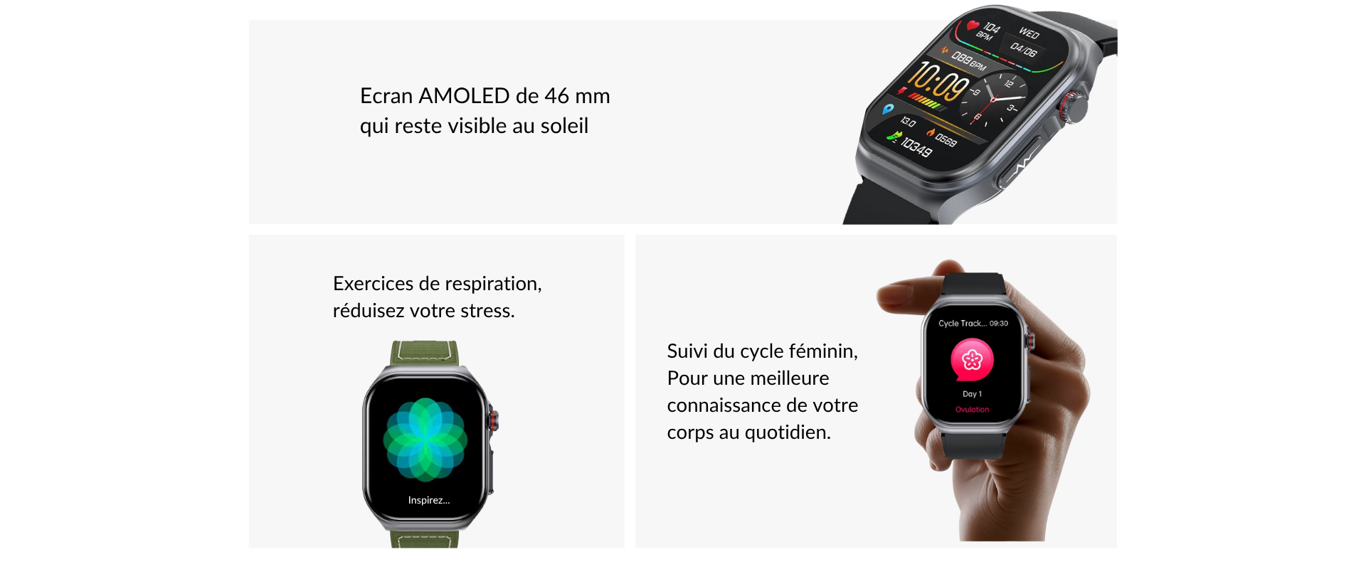 - Écran AMOLED 46mm : Très lisible même au soleil